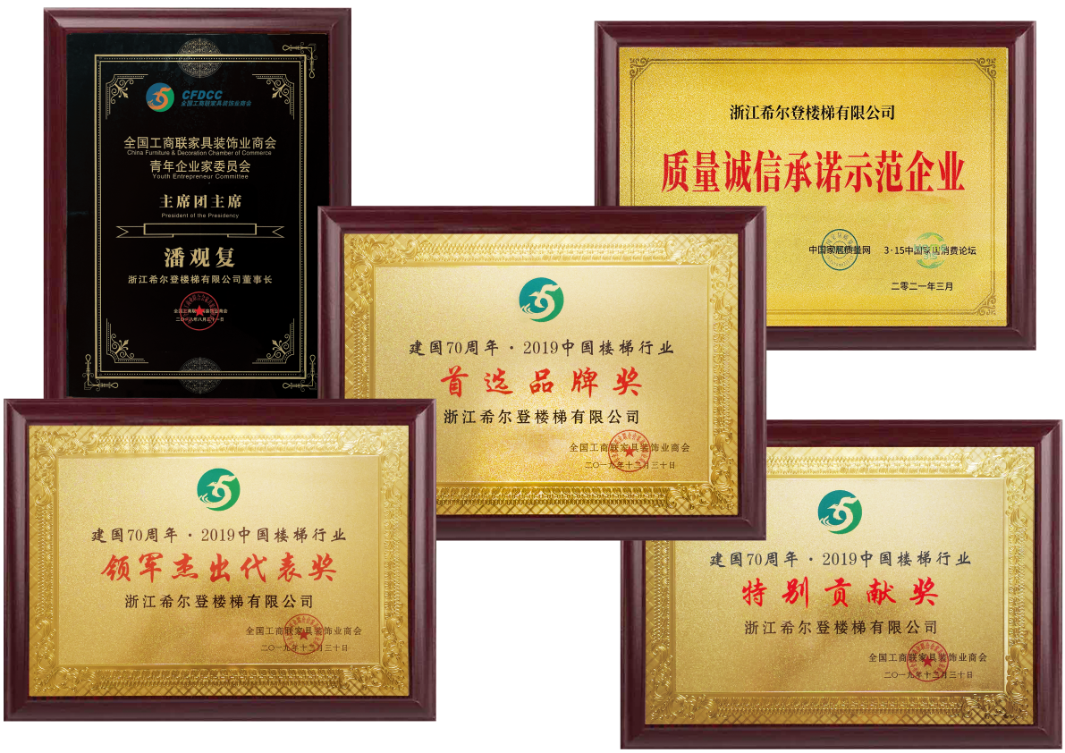在不斷提升希爾登品牌和企業(yè)實力的同時,希爾登一直熱心參與樓梯行業(yè)的健康發(fā)展;參與創(chuàng)立全國工商聯(lián)樓梯專委會并被推選為中國樓梯品牌聯(lián)盟執(zhí)行主席和樓梯專委會執(zhí)行會長;憑借在行業(yè)內的專業(yè)地位,希爾登參與了《木質樓梯》,《木質樓梯安裝驗收和使用規(guī)范》,《住宅內用樓梯》,《建筑用玻璃與金屬護欄》四個國家和行業(yè)標準的起草工作。先后榮獲“中國樓梯十大品牌”、“金木樓梯領軍品牌”、“中國泛家居發(fā)展中企業(yè)500強”、“中國家裝行業(yè)金鉆獎”、“金屬木質樓梯一級資質”等二十多個榮譽和稱號。我們幾乎參與和見證中國樓梯發(fā)展歷程中的所有重大事件。希爾登過去,現(xiàn)在和未來都是中國樓梯的標桿企業(yè)。